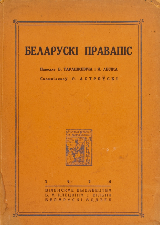 Гэтая кніга належыць да бібліятэкі сучаснага Віленскага Беларускага Музэю імя Івана Луцкевіча. Адсканавана ў рамках праекту Баркулаб. Беларускі правапіс / скампіляваў Радаслаў Астроўскі паводле Б. Тарашкевіча і Я. Лёсіка. Вільня: Віленскае выдавецтва Б. А. Клецкіна, беларускі аддзел, 1925. - 106 стр. Стан добры: вокладка з вадзянымі разводамі, скобнкі не вынятыя. Памеры аркуша: 15,8 х 23 см.
