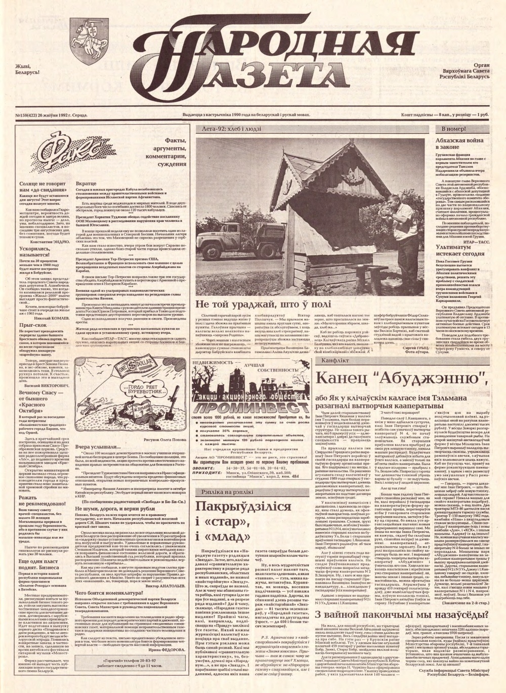 «Народная газета» — орган Вярхоўнага Савета Рэспублікі Беларусь. Выдавец: Адкрытае акцыянернае таварыства Народная газета. Выходзіць штодзённа, акрамя нядзелі і панядзелка, 250 разоў у год. Выдаецца з кастрычніка 1990 года на беларускай і рускай мовах. З 1990 па 1995 год пасаду галоўнага рэдактара «Народнай газеты» займаў Іосіф Сярэдзіч. З мая 1990 па студзень 1996 — дэпутат Вярхоўнага Савета XII склікання. Выданне займала ўмераную цэнтрысцкую пазыцыю, імкнучыся адлюстраваць палітычныя погляды большасці грамадзян. 17 сакавіка 1995 г. Указам № 113 Аляксандр Лукашэнка прызначыў галоўным рэдактарам «Народнай газеты» Мікалая Галко, не зважаючы на тое, што правам прызначаць галоўнага рэдактара сваёй уласнай газеты валодаў толькі Вярхоўны савет.