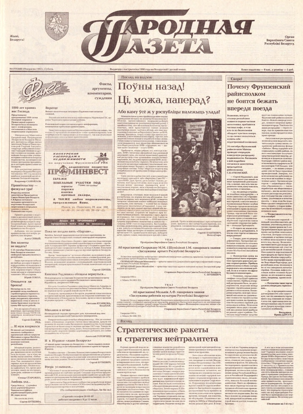 «Народная газета» — орган Вярхоўнага Савета Рэспублікі Беларусь. Выдавец: Адкрытае акцыянернае таварыства Народная газета. Выходзіць штодзённа, акрамя нядзелі і панядзелка, 250 разоў у год. Выдаецца з кастрычніка 1990 года на беларускай і рускай мовах. З 1990 па 1995 год пасаду галоўнага рэдактара «Народнай газеты» займаў Іосіф Сярэдзіч. З мая 1990 па студзень 1996 — дэпутат Вярхоўнага Савета XII склікання. Выданне займала ўмераную цэнтрысцкую пазыцыю, імкнучыся адлюстраваць палітычныя погляды большасці грамадзян. 17 сакавіка 1995 г. Указам № 113 Аляксандр Лукашэнка прызначыў галоўным рэдактарам «Народнай газеты» Мікалая Галко, не зважаючы на тое, што правам прызначаць галоўнага рэдактара сваёй уласнай газеты валодаў толькі Вярхоўны савет.