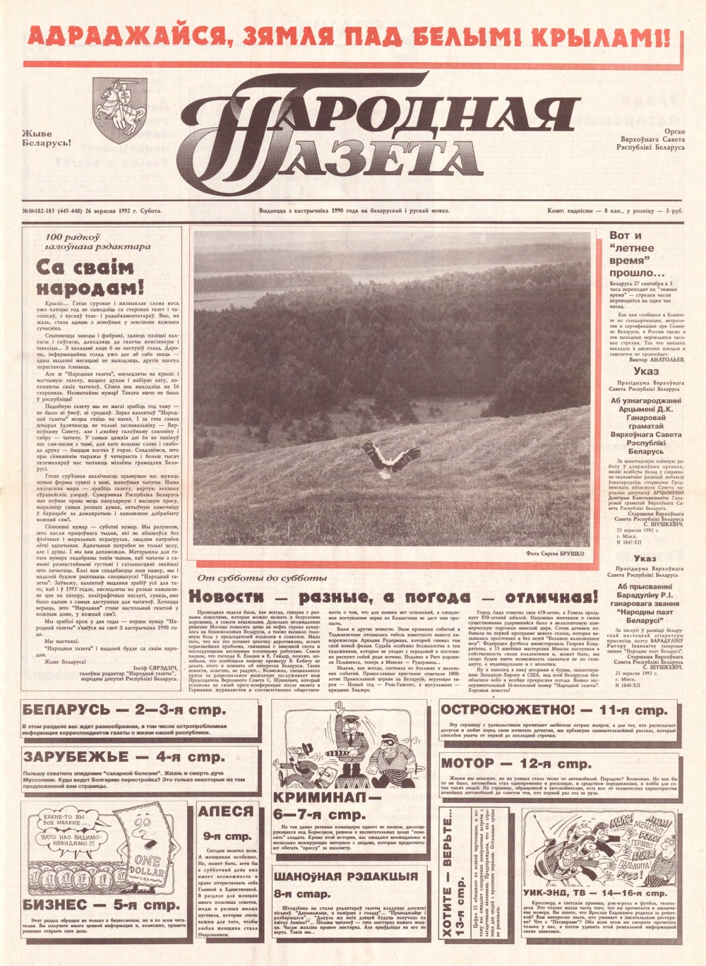 «Народная газета» — орган Вярхоўнага Савета Рэспублікі Беларусь. Выдавец: Адкрытае акцыянернае таварыства Народная газета. Выходзіць штодзённа, акрамя нядзелі і панядзелка, 250 разоў у год. Выдаецца з кастрычніка 1990 года на беларускай і рускай мовах. З 1990 па 1995 год пасаду галоўнага рэдактара «Народнай газеты» займаў Іосіф Сярэдзіч. З мая 1990 па студзень 1996 — дэпутат Вярхоўнага Савета XII склікання. Выданне займала ўмераную цэнтрысцкую пазыцыю, імкнучыся адлюстраваць палітычныя погляды большасці грамадзян. 17 сакавіка 1995 г. Указам № 113 Аляксандр Лукашэнка прызначыў галоўным рэдактарам «Народнай газеты» Мікалая Галко, не зважаючы на тое, што правам прызначаць галоўнага рэдактара сваёй уласнай газеты валодаў толькі Вярхоўны савет.