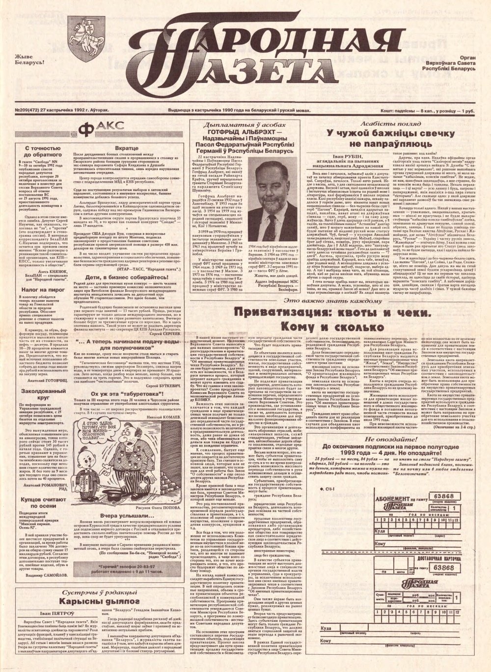 Народная газета 209 (472) 1992