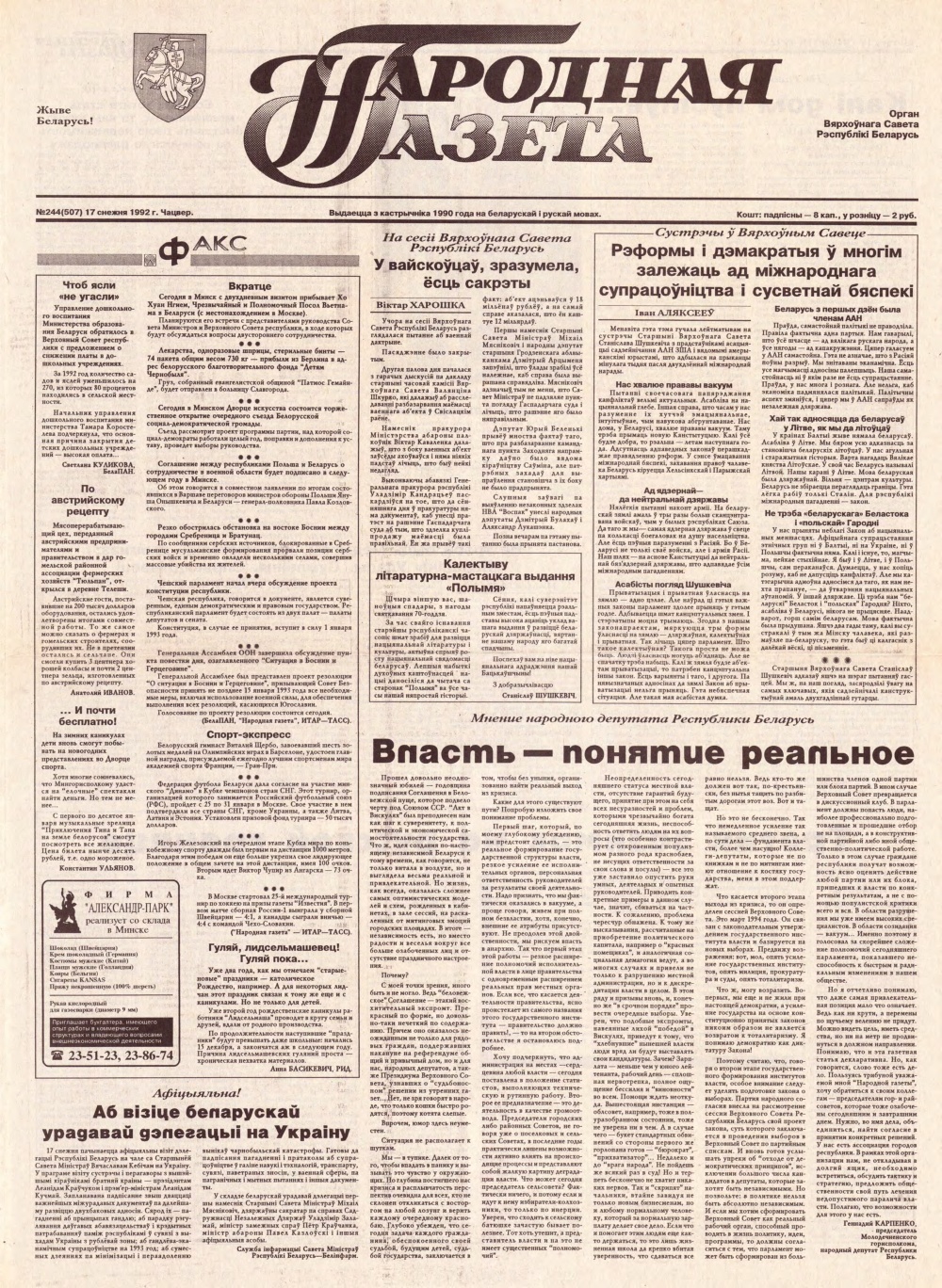 Народная газета 244 (507) 1992