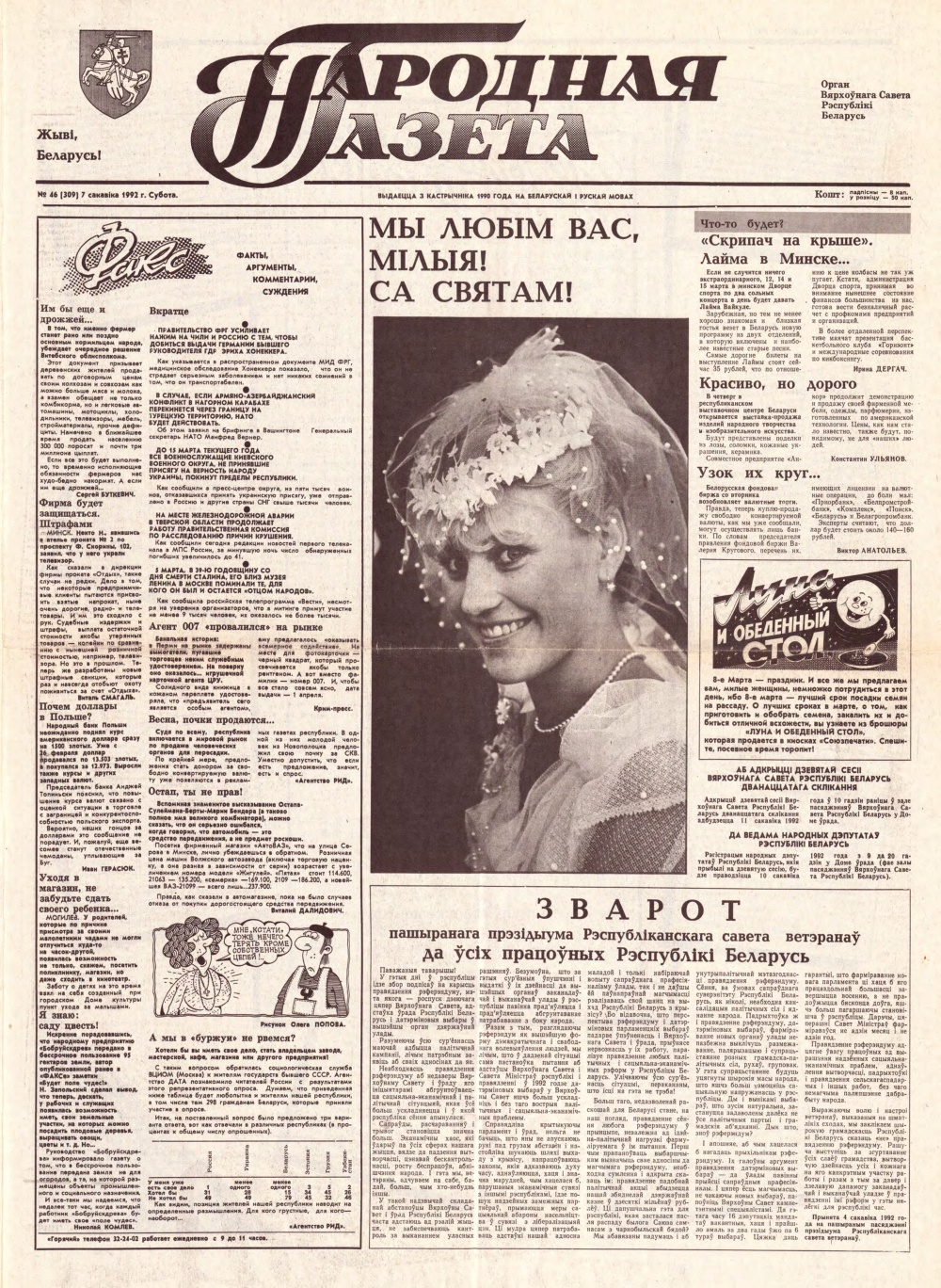 «Народная газета» — орган Вярхоўнага Савета Рэспублікі Беларусь. Выдавец: Адкрытае акцыянернае таварыства Народная газета. Выходзіць штодзённа, акрамя нядзелі і панядзелка, 250 разоў у год. Выдаецца з кастрычніка 1990 года на беларускай і рускай мовах. З 1990 па 1995 год пасаду галоўнага рэдактара «Народнай газеты» займаў Іосіф Сярэдзіч. З мая 1990 па студзень 1996 — дэпутат Вярхоўнага Савета XII склікання. Выданне займала ўмераную цэнтрысцкую пазыцыю, імкнучыся адлюстраваць палітычныя погляды большасці грамадзян. 17 сакавіка 1995 г. Указам № 113 Аляксандр Лукашэнка прызначыў галоўным рэдактарам «Народнай газеты» Мікалая Галко, не зважаючы на тое, што правам прызначаць галоўнага рэдактара сваёй уласнай газеты валодаў толькі Вярхоўны савет.