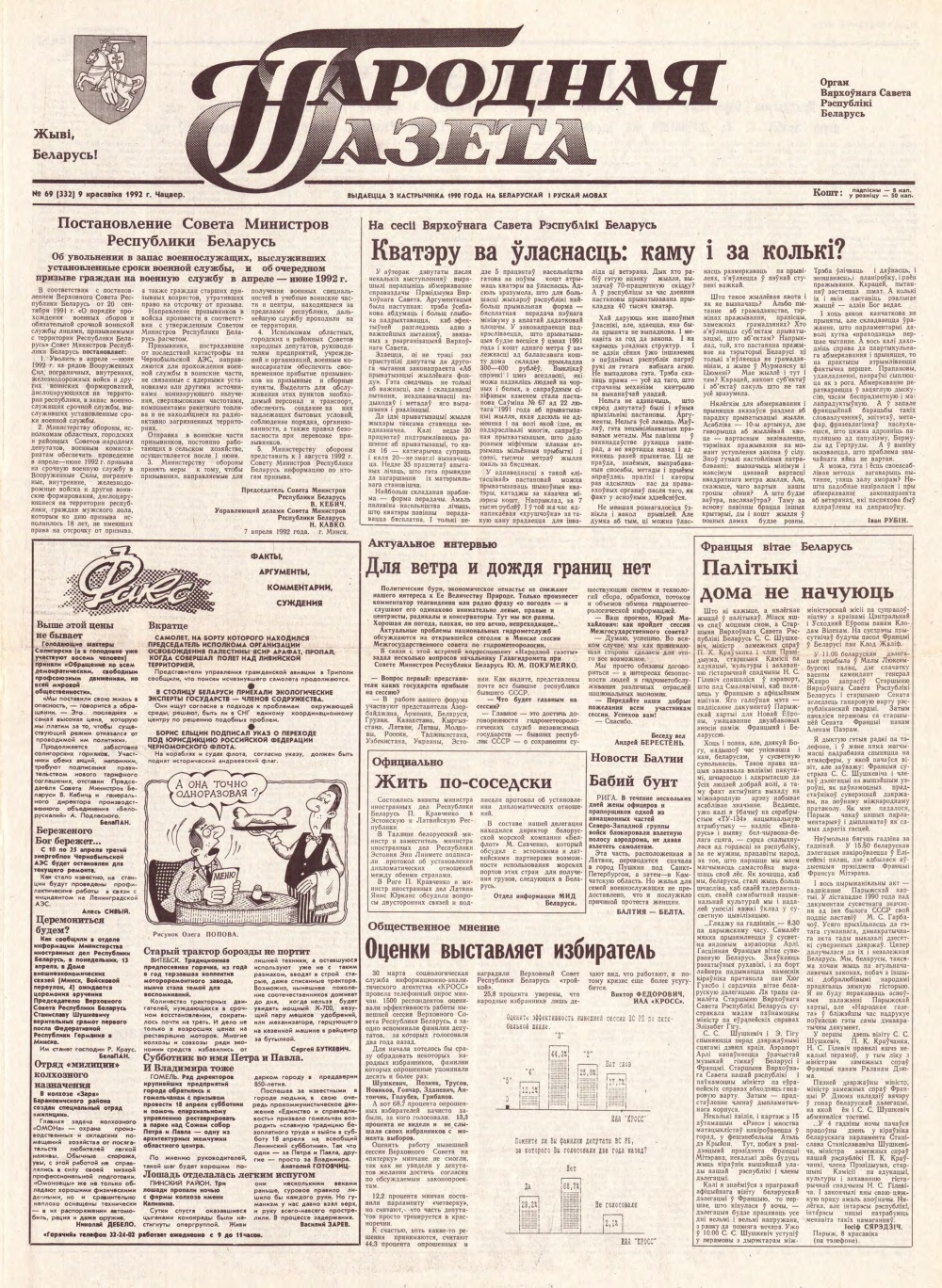«Народная газета» — орган Вярхоўнага Савета Рэспублікі Беларусь. Выдавец: Адкрытае акцыянернае таварыства Народная газета. Выходзіць штодзённа, акрамя нядзелі і панядзелка, 250 разоў у год. Выдаецца з кастрычніка 1990 года на беларускай і рускай мовах. З 1990 па 1995 год пасаду галоўнага рэдактара «Народнай газеты» займаў Іосіф Сярэдзіч. З мая 1990 па студзень 1996 — дэпутат Вярхоўнага Савета XII склікання. Выданне займала ўмераную цэнтрысцкую пазыцыю, імкнучыся адлюстраваць палітычныя погляды большасці грамадзян. 17 сакавіка 1995 г. Указам № 113 Аляксандр Лукашэнка прызначыў галоўным рэдактарам «Народнай газеты» Мікалая Галко, не зважаючы на тое, што правам прызначаць галоўнага рэдактара сваёй уласнай газеты валодаў толькі Вярхоўны савет.