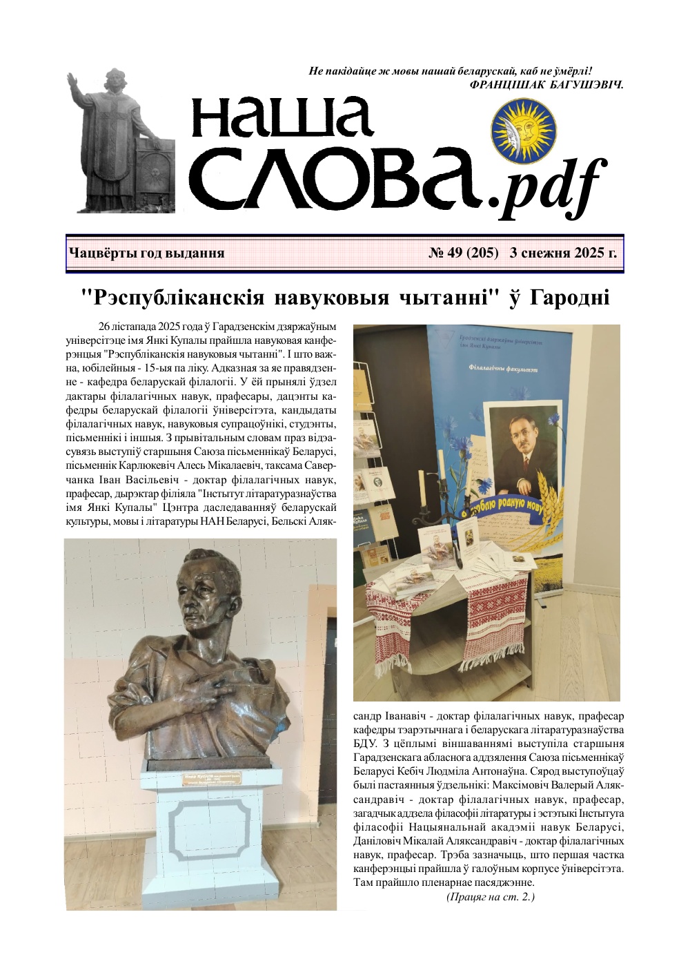 «Наша слова» — штотыднёвая газета. Змяшчае інфармацыйныя, публіцыстычныя, гістарычныя, палемічныя, агітацыйныя і мовазнаўчыя матэрыялы па праблемах беларускай мовы і культуры.