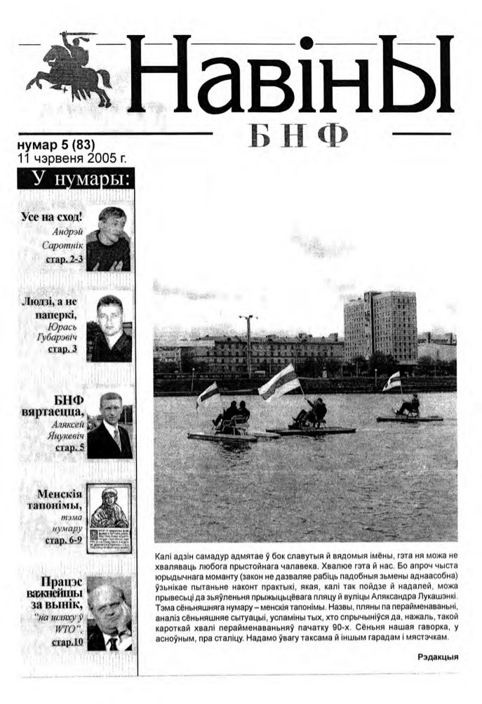 «Навіны БНФ - Распаўсюджваецца бясплатна на правох унутранай дакумэнтацыі. Галоўны рэдпктар: Юры Гембіцкі, выпускны рэдпктар: Франак Вячорка.