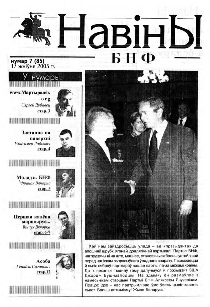 «Навіны БНФ - Распаўсюджваецца бясплатна на правох унутранай дакумэнтацыі. Галоўны рэдпктар: Юры Гембіцкі, выпускны рэдпктар: Франак Вячорка.