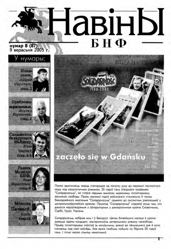«Навіны БНФ - Распаўсюджваецца бясплатна на правох унутранай дакумэнтацыі. Галоўны рэдпктар: Юры Гембіцкі, выпускны рэдпктар: Франак Вячорка.
