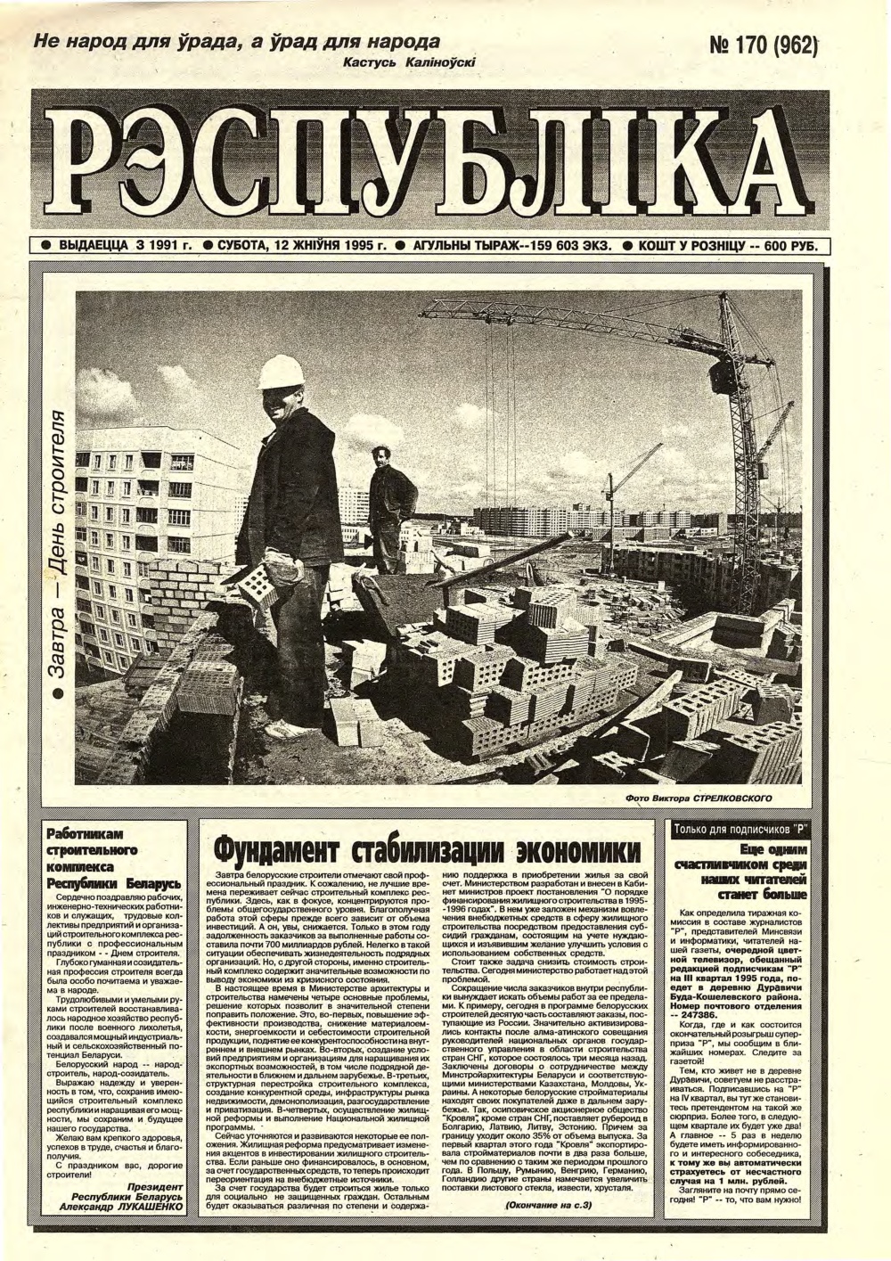 «Рэспубліка» — газета для тых, хто самастойна прымае рашэнні. Заснавальнік - Савет Міністраў Рэспублікі Беларусь. Выдаецца з чэрвеня 1991. Газета выходзіць 250 разоў у год. Аўтары апублікаваных матэрыялаў нясуць адказнасць за падбор і дакладнасць фактаў, іх меркаванні неабавязкова адлюстроўваюць пункт гледжання рэдакцыі. Рукапісы, фотаздымкі і малюнкі не рэцэнзуюцца і не вяртаюцца.