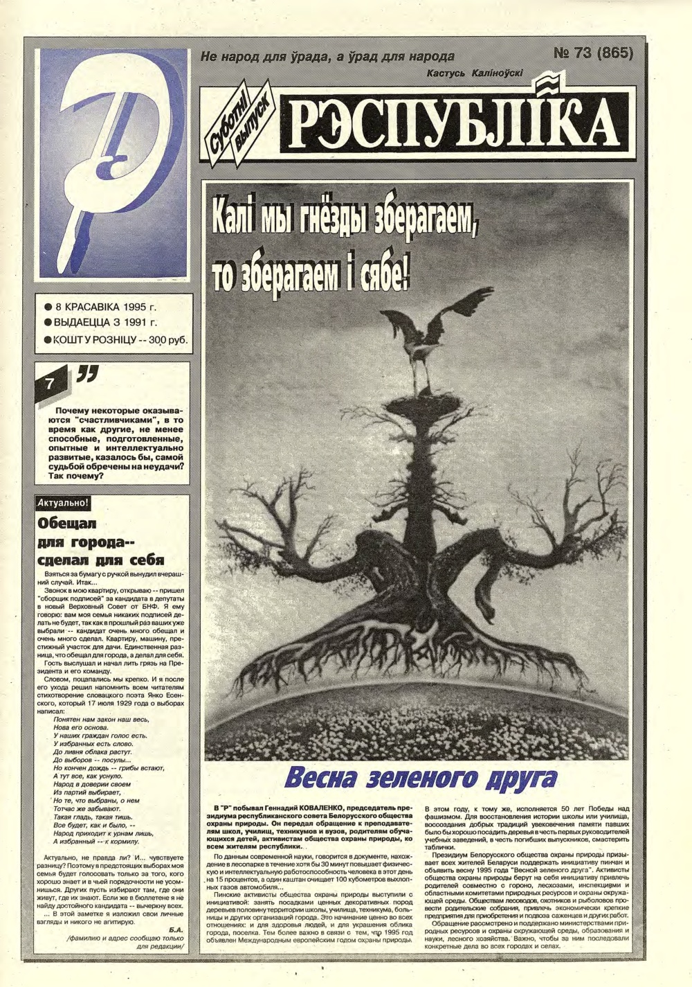 «Рэспубліка» — газета для тых, хто самастойна прымае рашэнні. Заснавальнік - Савет Міністраў Рэспублікі Беларусь. Выдаецца з чэрвеня 1991. Газета выходзіць 250 разоў у год. Аўтары апублікаваных матэрыялаў нясуць адказнасць за падбор і дакладнасць фактаў, іх меркаванні неабавязкова адлюстроўваюць пункт гледжання рэдакцыі. Рукапісы, фотаздымкі і малюнкі не рэцэнзуюцца і не вяртаюцца.