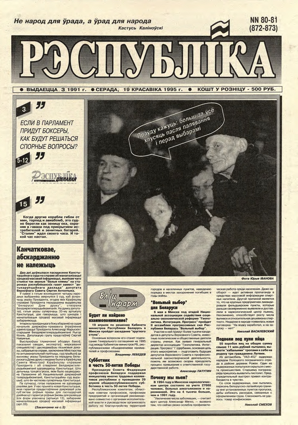 «Рэспубліка» — газета для тых, хто самастойна прымае рашэнні. Заснавальнік - Савет Міністраў Рэспублікі Беларусь. Выдаецца з чэрвеня 1991. Газета выходзіць 250 разоў у год. Аўтары апублікаваных матэрыялаў нясуць адказнасць за падбор і дакладнасць фактаў, іх меркаванні неабавязкова адлюстроўваюць пункт гледжання рэдакцыі. Рукапісы, фотаздымкі і малюнкі не рэцэнзуюцца і не вяртаюцца.