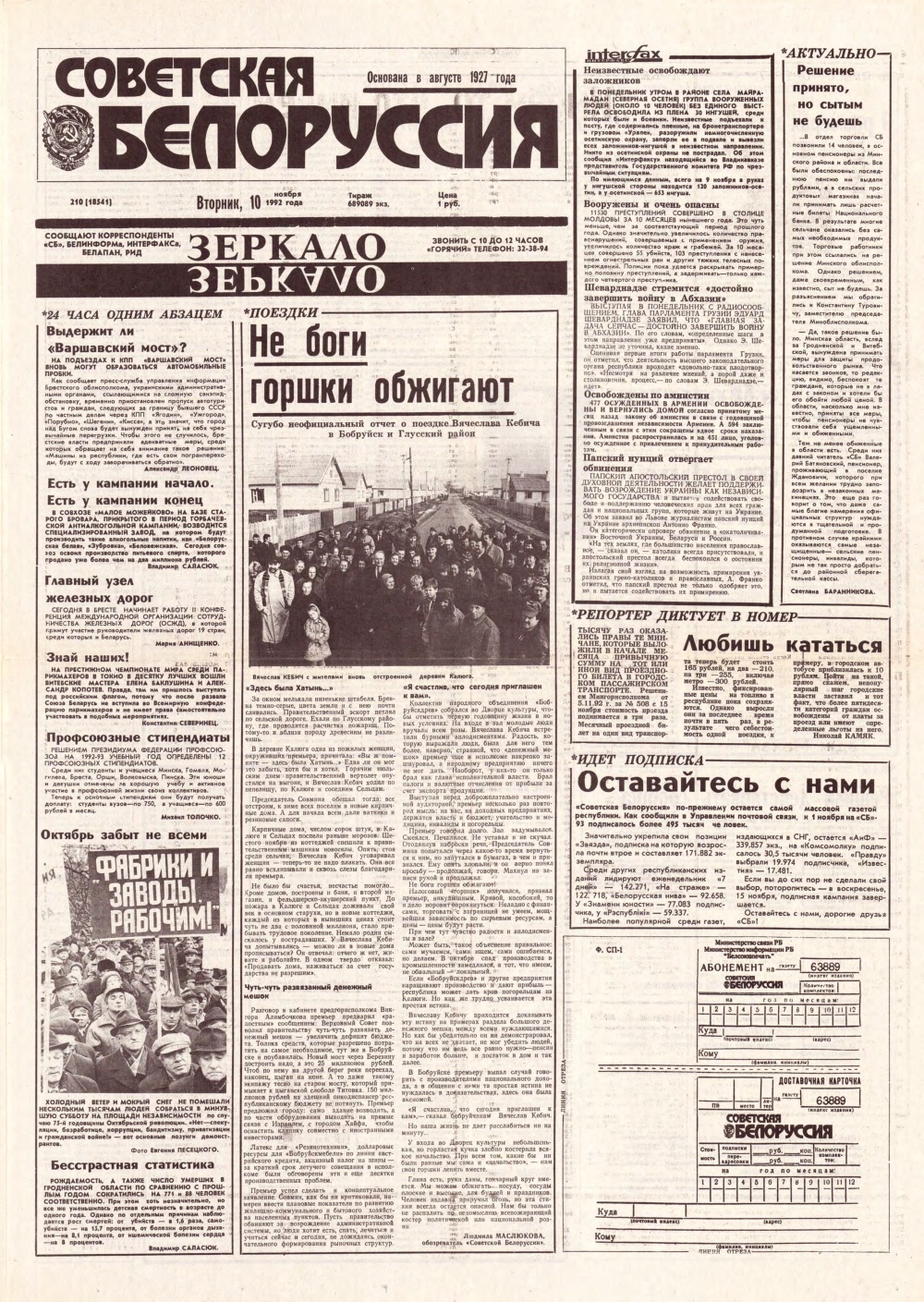 Советская Белоруссия 210 (18541) 1992