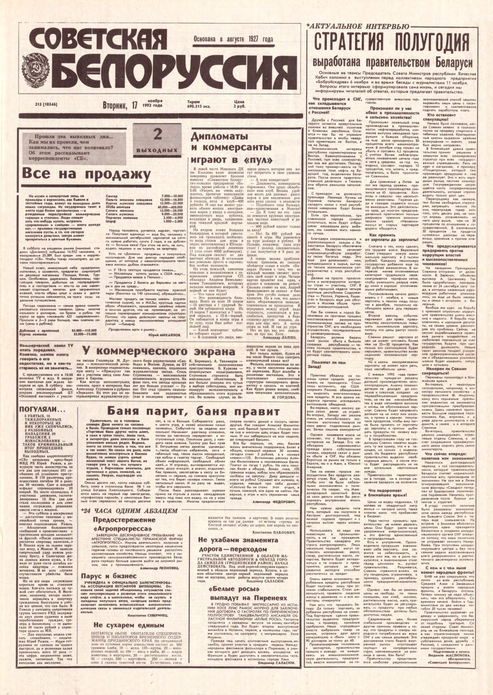 Советская Белоруссия 215 (18546) 1992
