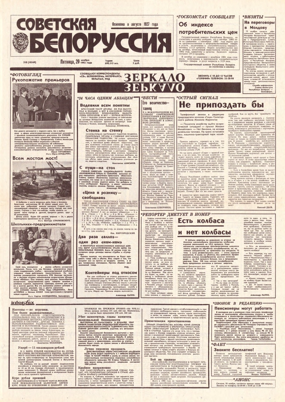Советская Белоруссия 218 (18549) 1992