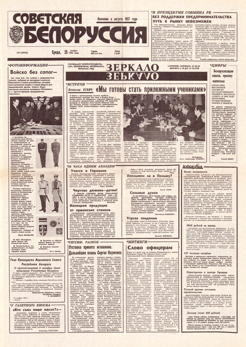 Советская Белоруссия 221 (18552) 1992