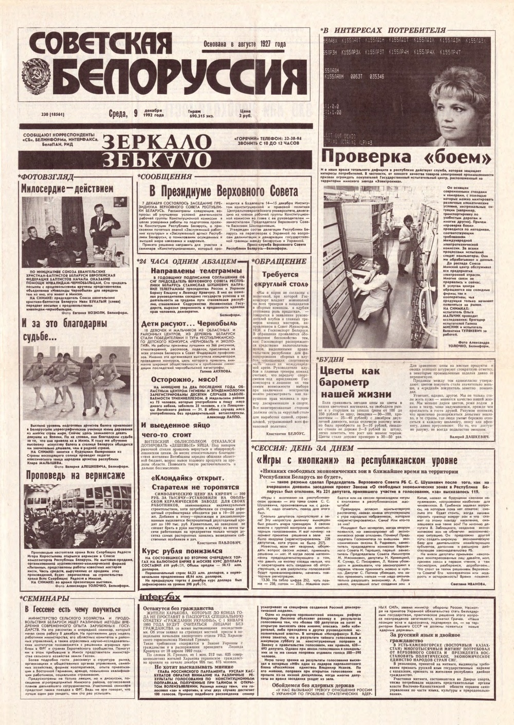 орган Центрального Комитета Коммунистической партии Белоруссии, Верховного Совета и Совета Министров БССР