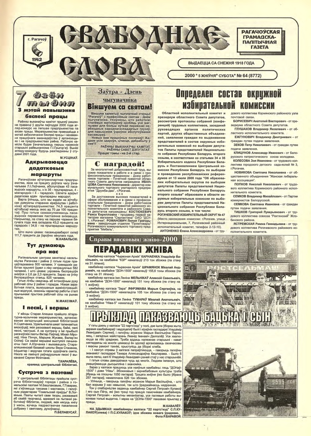Свабоднае слова (Рагачоў) 64 (8772) 2000