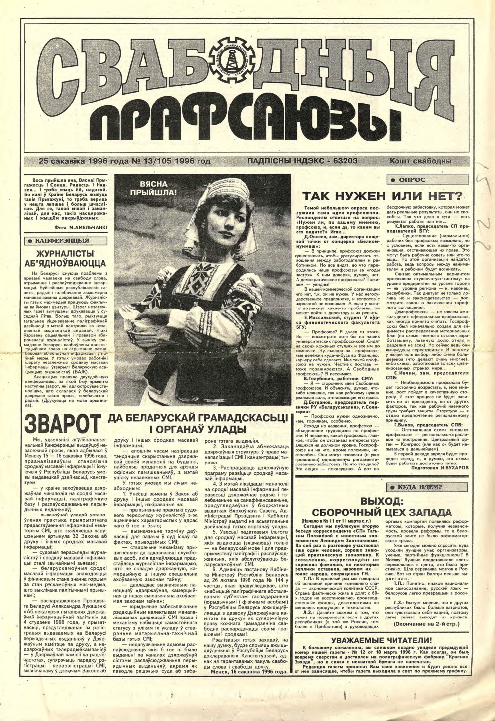 Свабодныя прафсаюзы 13 (105) 1996