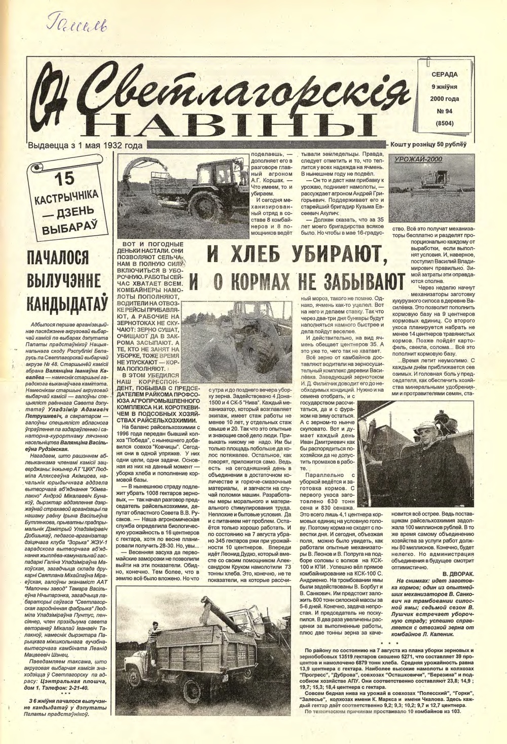 Светлагорскія навіны 94 (8502-8504) 2000