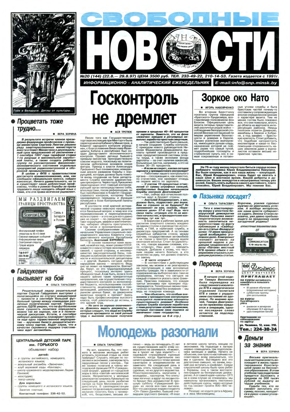 «Свободные новости плюс» — информационно-аналитический еженедельник. Издается с сентября 2002 года. Учредители: Белорусская научно-промышленная ассоциация и промышленно-коммерческая компания «Белфакс». За текст рекламы несет ответственность рекламодатель.