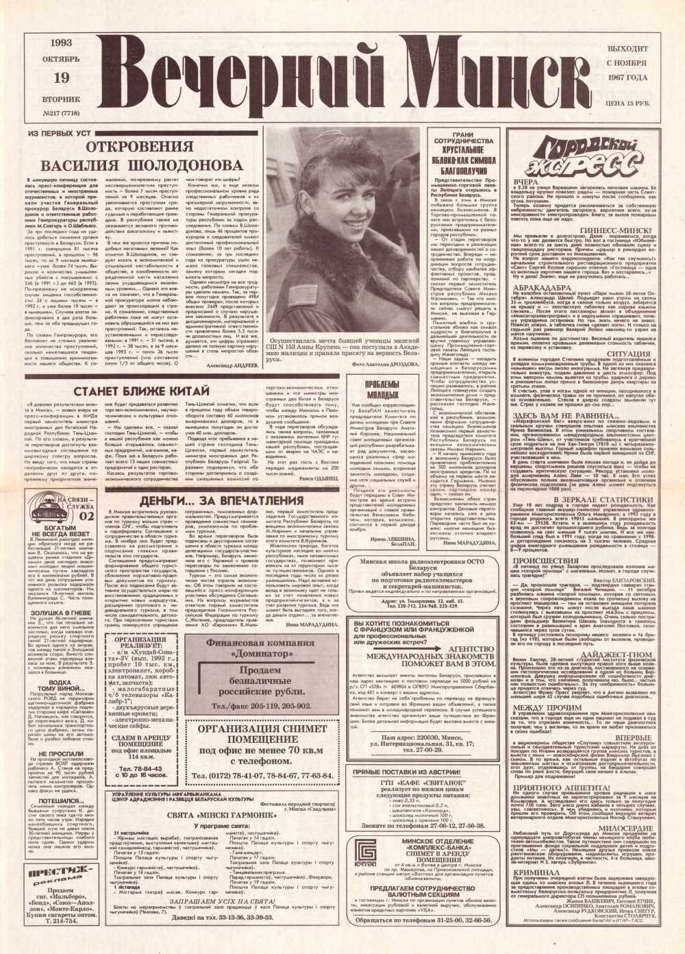 Вечерний Минск 217 (7718) 1993
