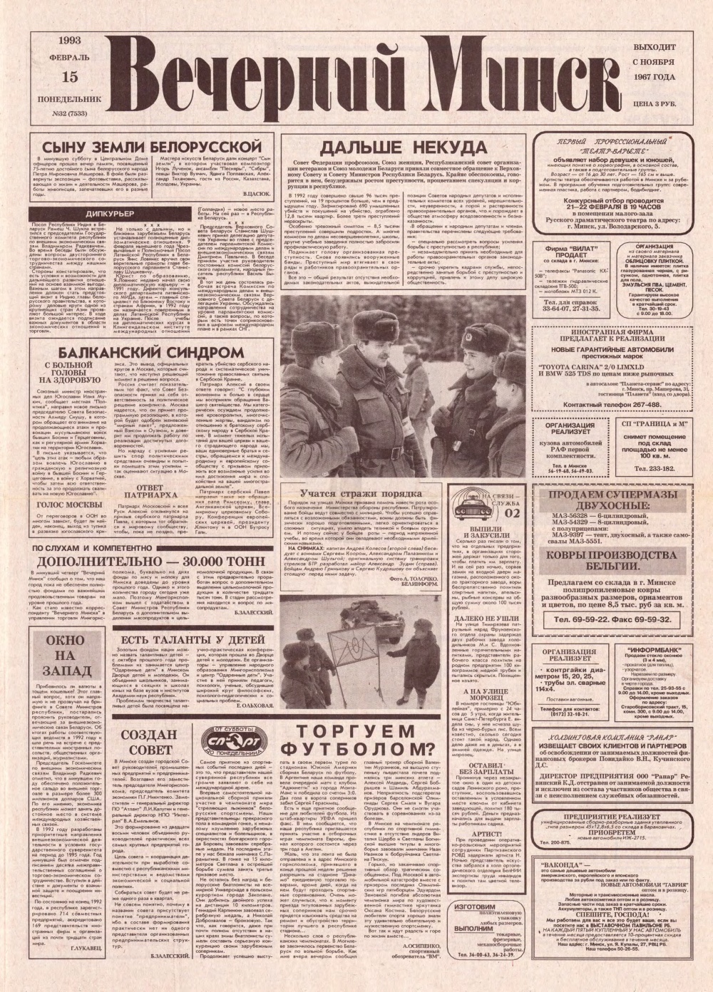 • Выдавец: трудовой коллектив редакции газеты Вечерний Минск