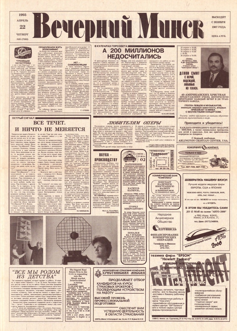 • Выдавец: трудовой коллектив редакции газеты Вечерний Минск